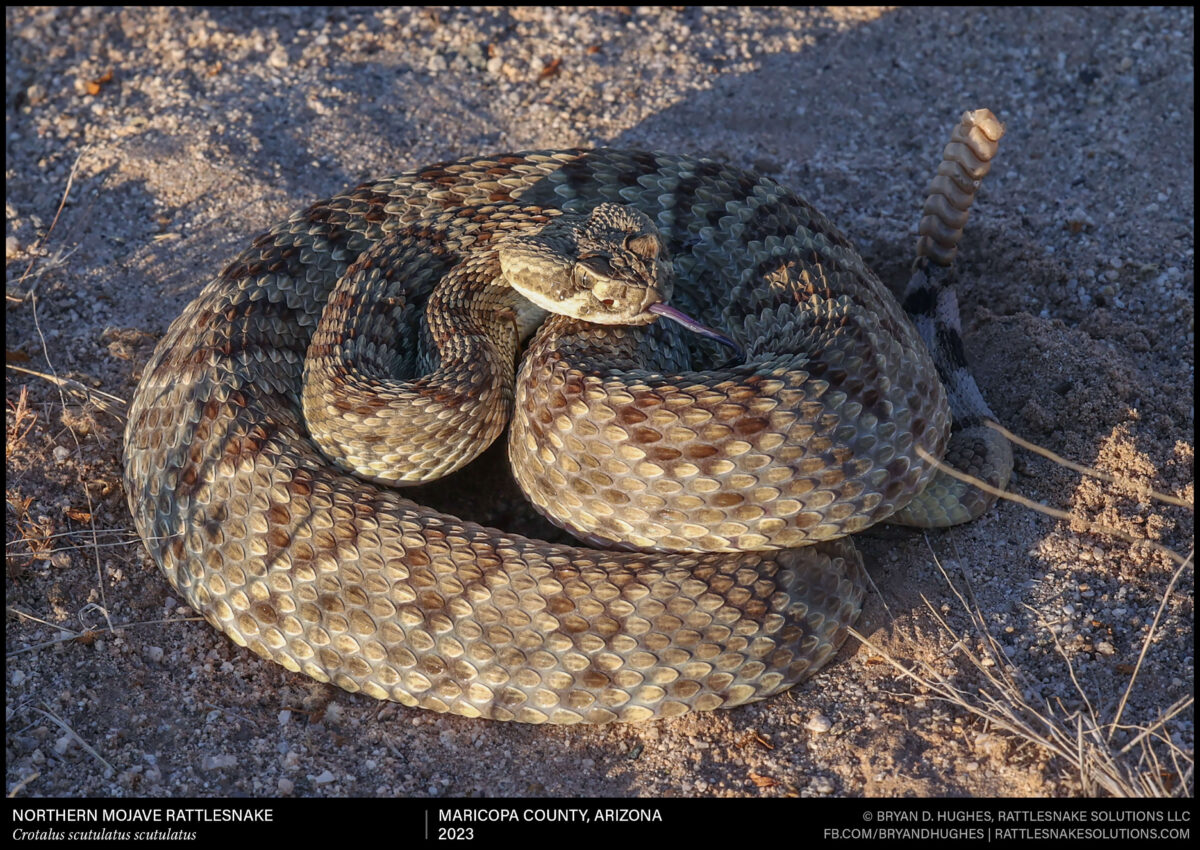 This animal is not being aggressive, not seeking a fight, or coming after anyone. It’s a defensive Mojave Rattlesnake letting me know that coming closer would be a bad idea.