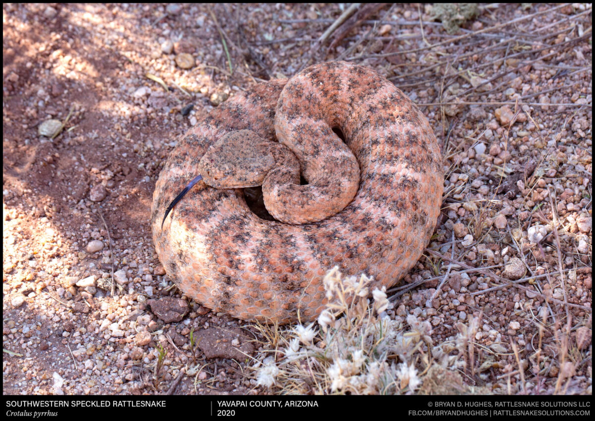 A Southwestern Speckled Rattlesnake from central Arizona. In this region, the rocks are often brightly colored with oxidized metals and tinted crystals. This makes for some really amazing snakes.