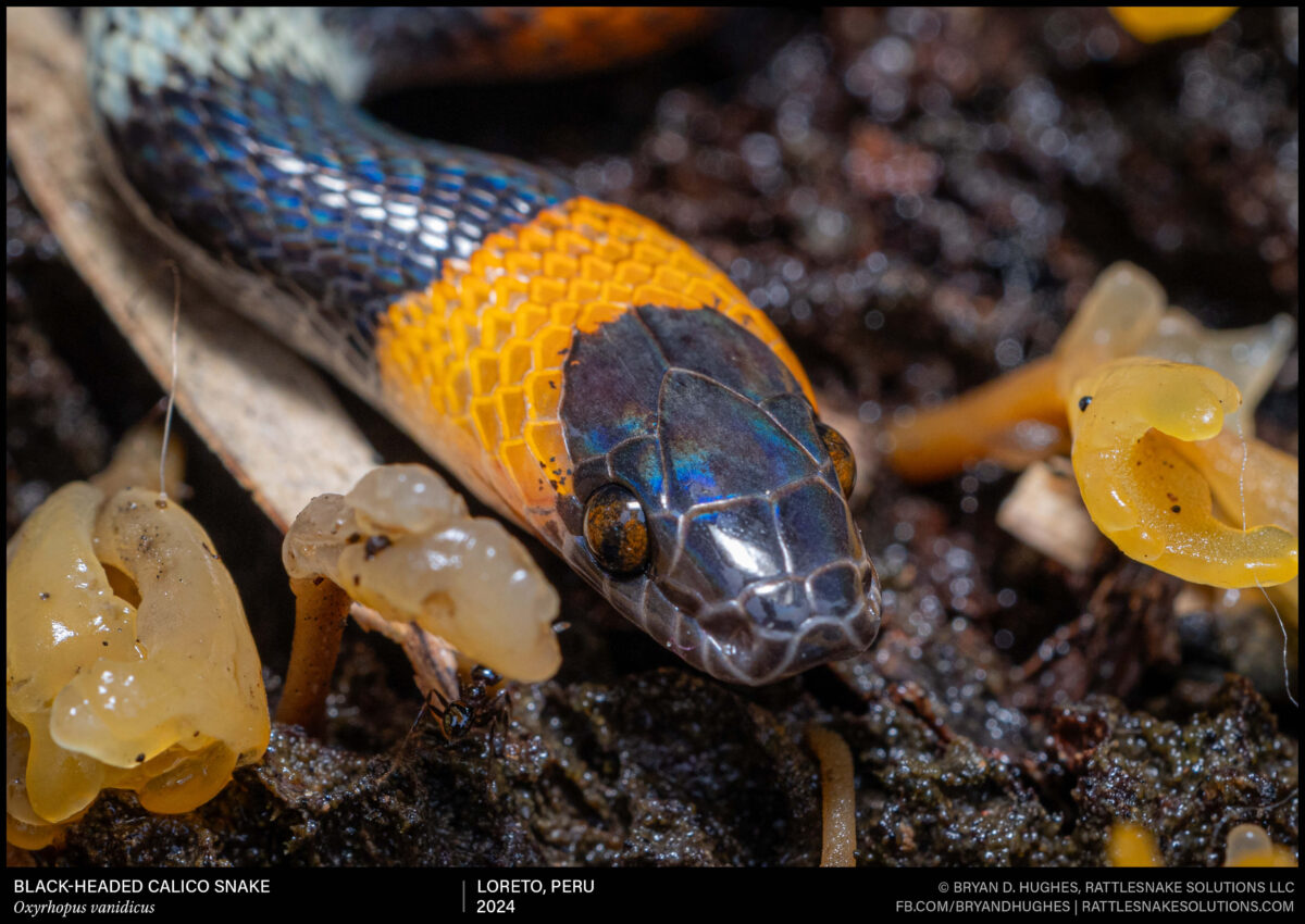 Close up with a Black Headed Calico Snake, a harmless mimic of the Hemphrich’s Coralsnake which also lives in the area. Found a couple of years ago in Peru.