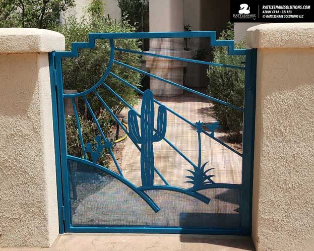 Michael and Josh did great with this decorative courtyard gate in Tucson! Without changing how it looks, the homeowners can worry less about a rattlesnake hanging out by the front door. Whew!