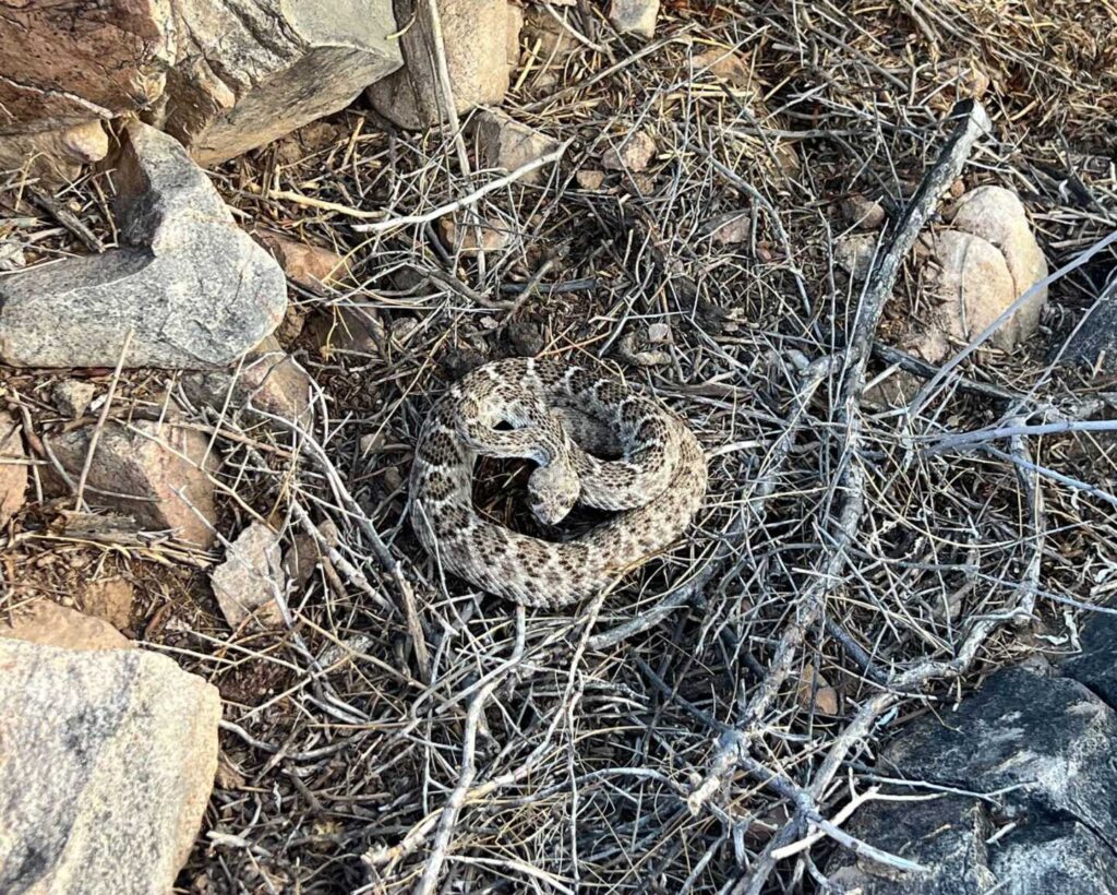 A Western Diamondback Rattlesnake was spotted by a homeowner coiled up on the back patio. The yard doesn’t yet have rattlesnake fencing, so the side gates might as well be propped wide open for an animal that’s only an inch tall. Austin went out to capture the snake and search for others (there weren’t any) and relocated the snake to a deep packrat midden within the snake’s estimated home range. The optional nature of this encounter (as many are) was discussed with the home owner as well.