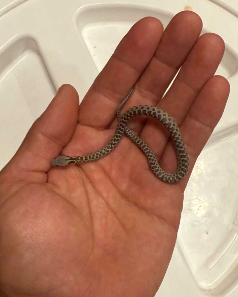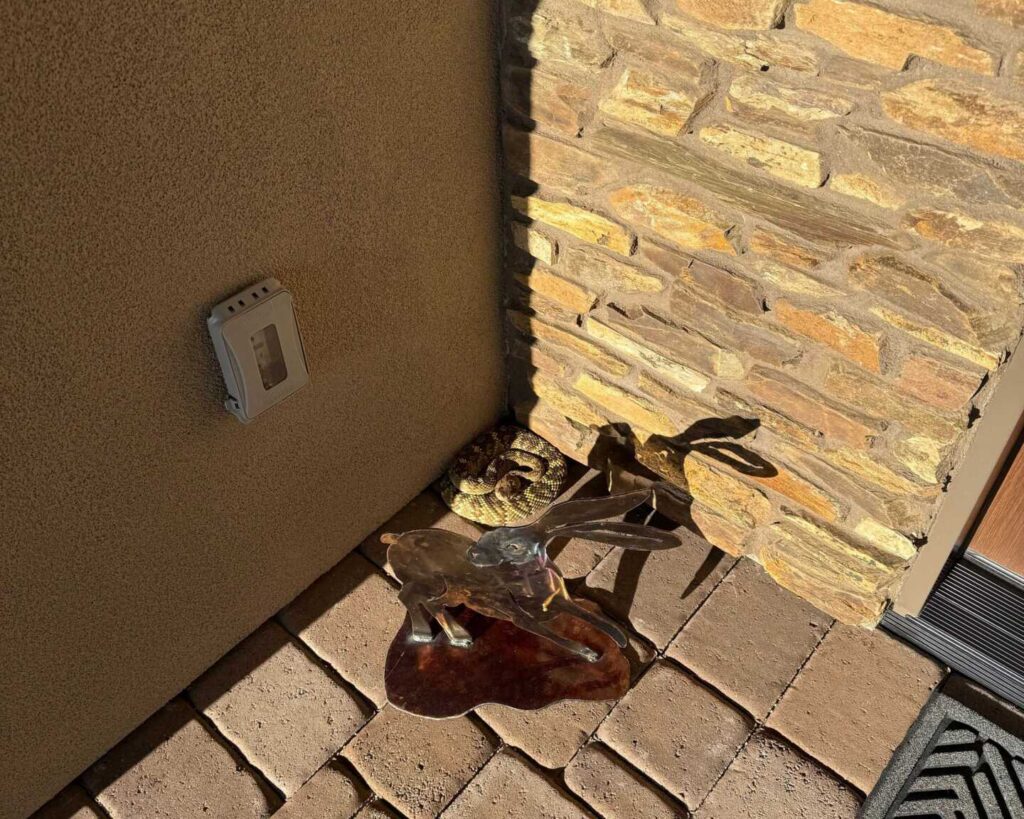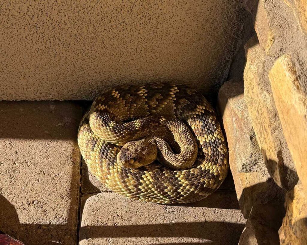 Blacktailed Rattlesnakes are large, usually greenish snakes found in mountainous habitat. Of the rattlesnake species in the areas where we work, they are the least likely to be found at a home. This one was on the patio near Prescott, Arizona. Dane carefully relocated the snake to suitable habitat, based on the natural history of the species, time of year, and other factors.