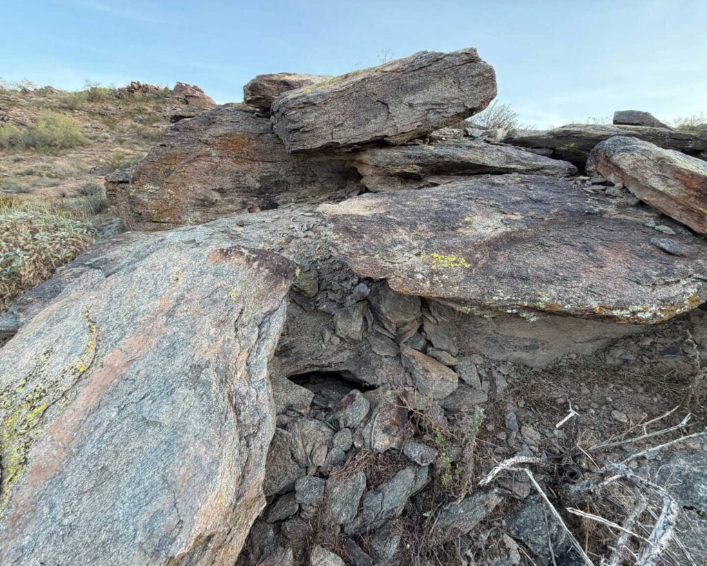 Austin arrived and safely relocated the snake to a wash within its estimated home range, placing it into deep cover inside a packrat nest under a large tree.
