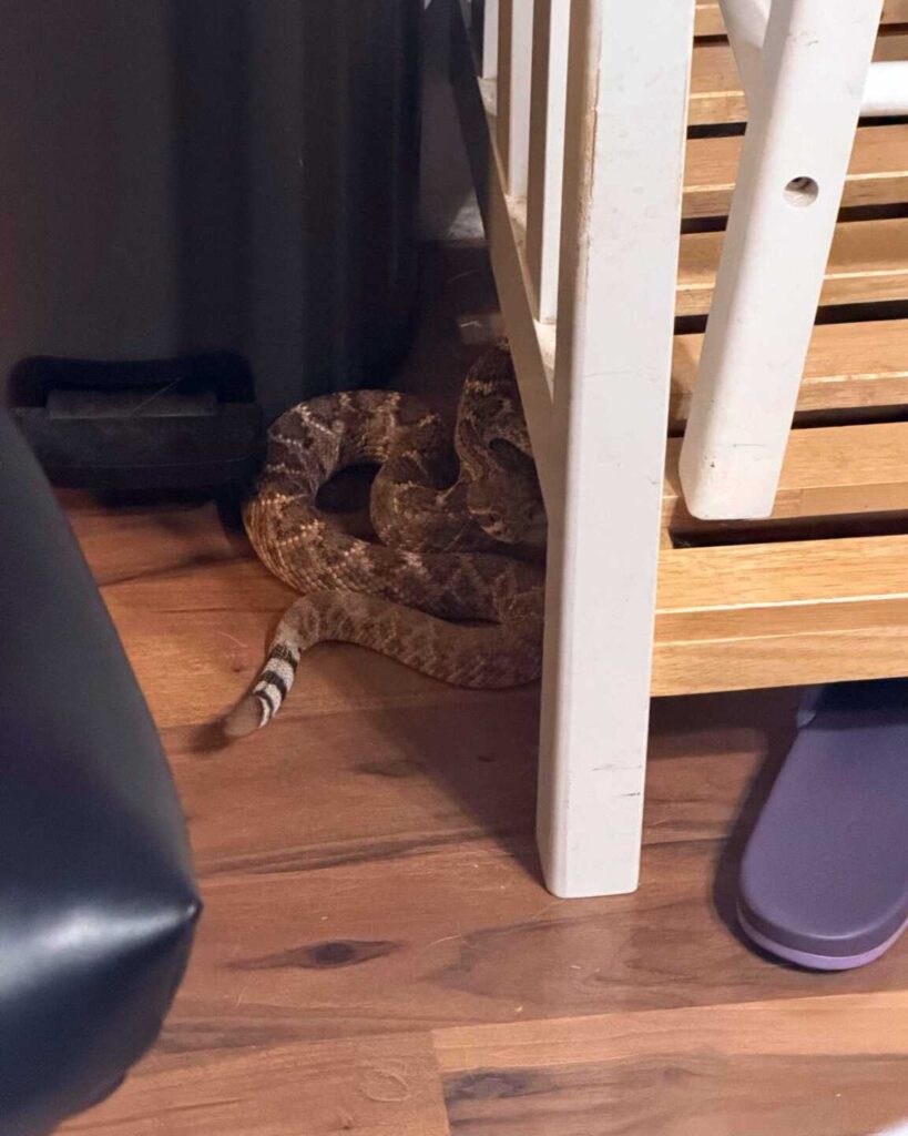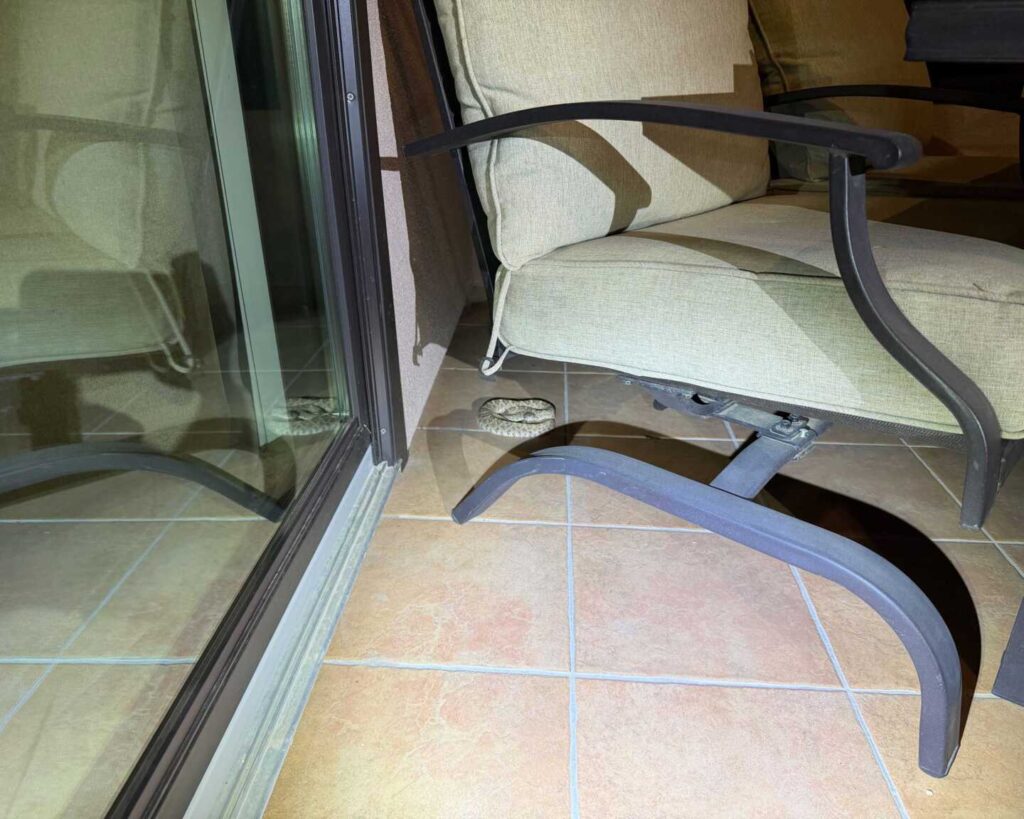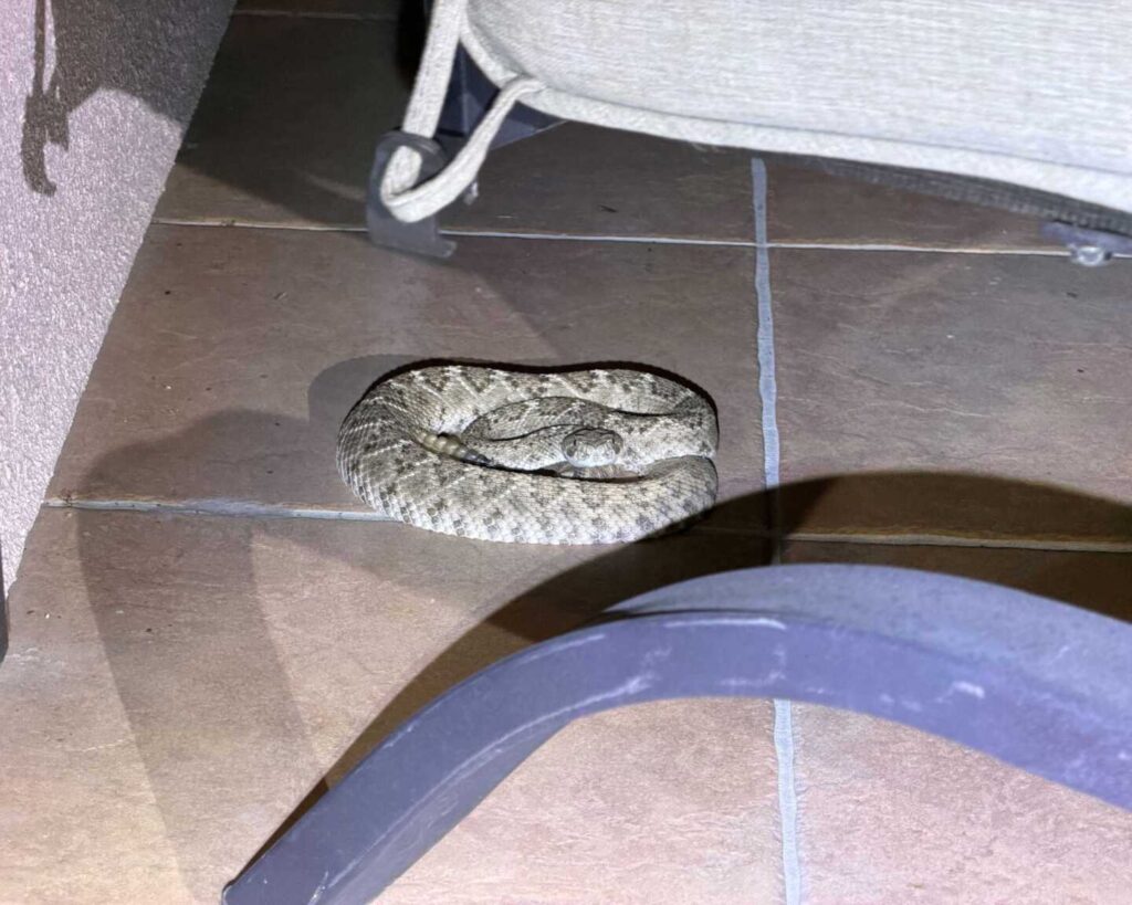 Well, that’s not good. A homeowner was working from her office when she spotted this adult Western Diamondback Rattlesnake inside. She mentioned seeing a snake in her garage the day before and assumed it was likely the same one. Typically, indoor calls like this turn out to be Night Snakes or Gophersnakes, so finding an adult Western Diamondback Rattlesnake inside was a surprise.