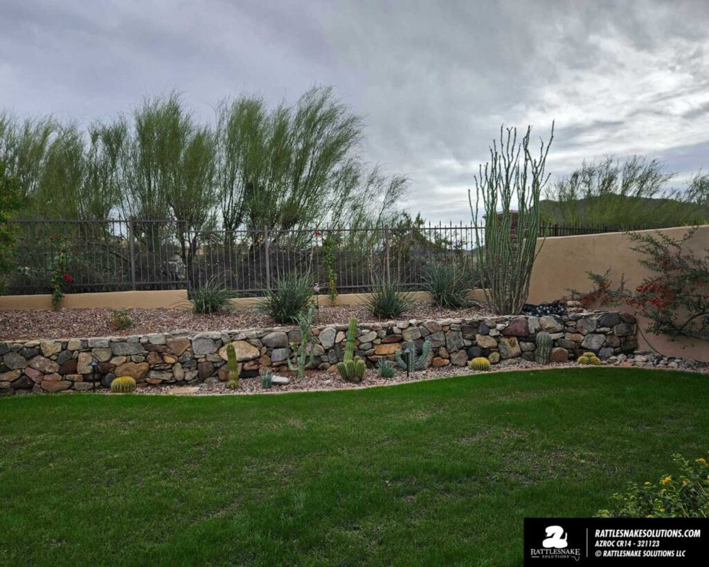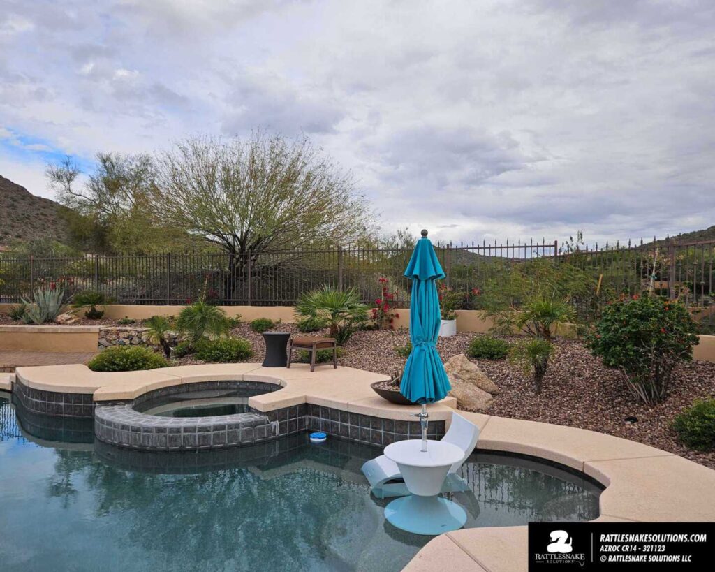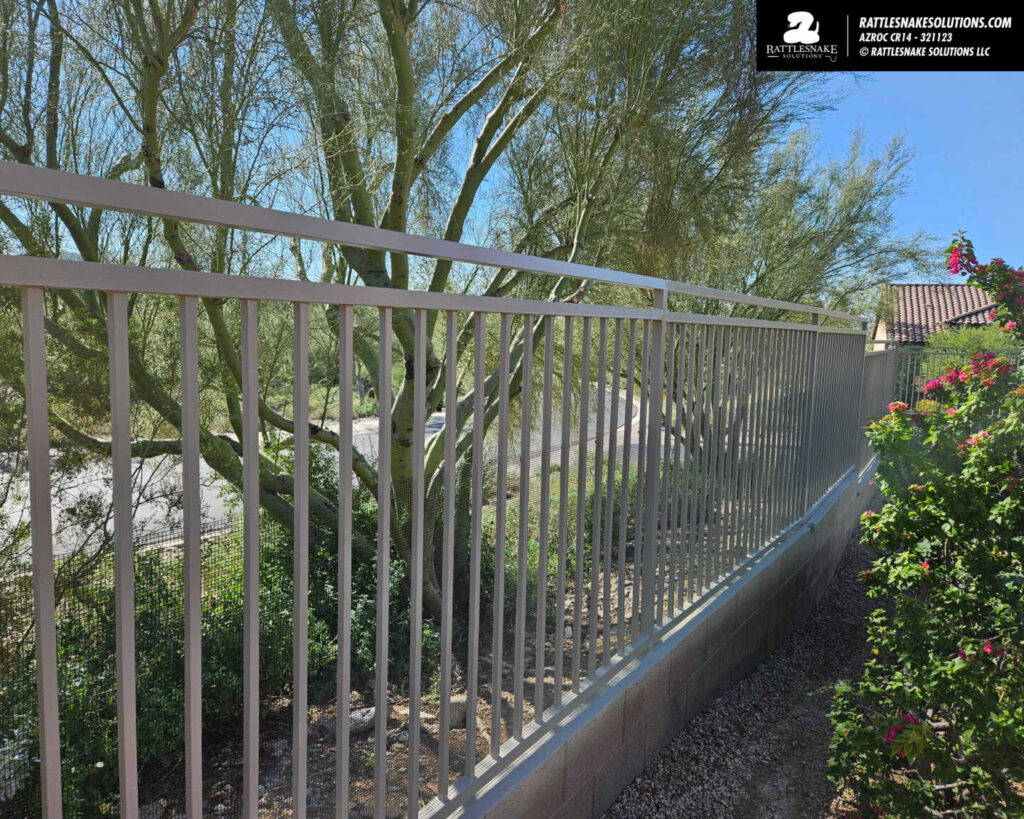 Mark and Daylan killed it on this this one. A property that was open to the desert with custom fencing, now protected from rattlesnakes by our system. From the patio, the rattlesnake fencing added is all but invisible.