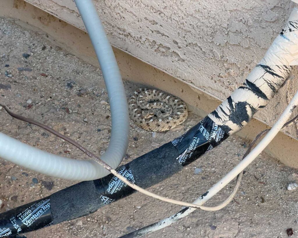 A rare snake for us to get on a call, this Sonoran Sidewinder was curled up in the only shaded part of the yard this afternoon in Casa Grande. With temperatures in the low 100s, this snake had little choice but to stay put and wait until after sunset to make any moves.