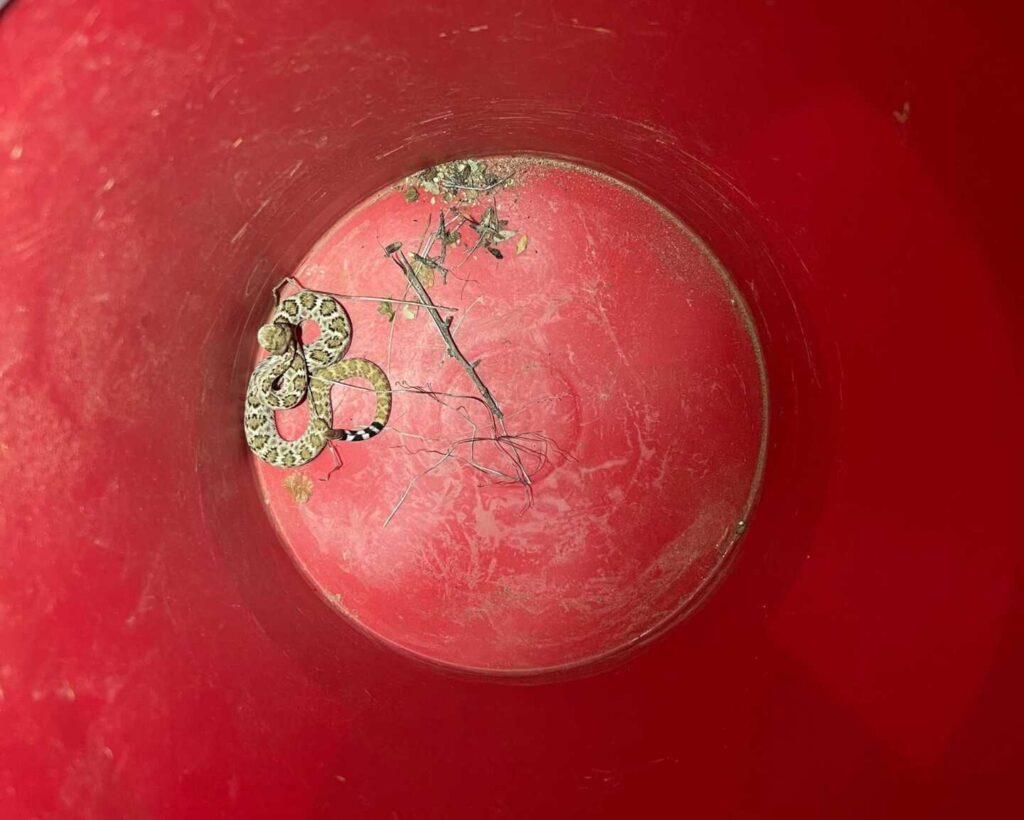 A late night little guy. This Western Diamondback Rattlesnake was the first rattlesnake the homeowners have seen in the four years they’ve lived in the area. It’s likely not the first that’s seen them, though, being the first house on the end of the street opposite a wash. This is a very common situation here in Cave Creek, Arizona. CJ helped the little one to a better spot to spend its winter.