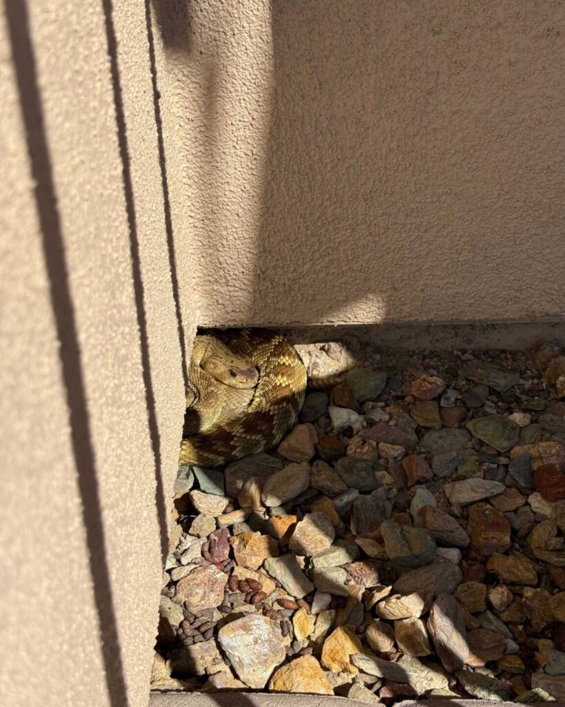 This Blacktailed Rattlesnake was found in a shady spot at a home in Yavapai Hills, Arizona. The homeowner had just started to walk up the spiral stairs when she spotted the visitor. Dane helped the snake get up the hill to a suitable release site.