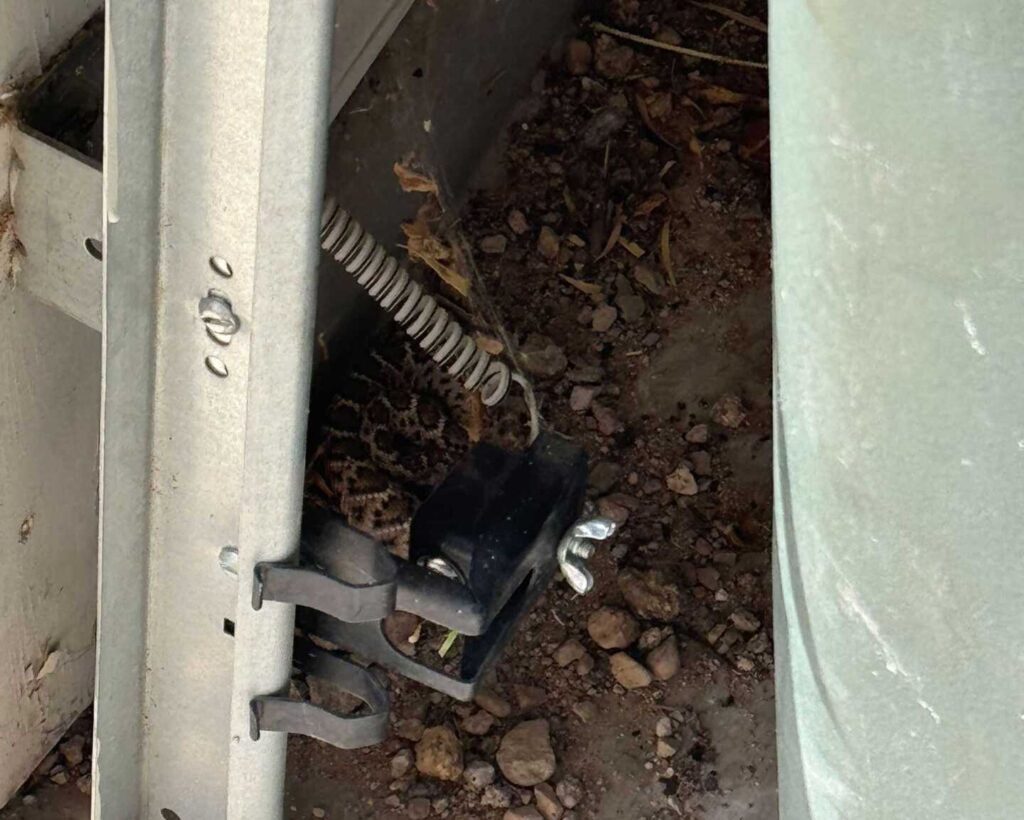 From the weekend: A homeowner called after opening her garage door and watching a rattlesnake fall from the inside panel onto the floor. Josh responded quickly and found a juvenile Western Diamondback coiled in the corner of the garage. She is no stranger to rattlesnakes, as her property backs up directly to a wash and she sees them regularly in the area. The snake was safely relocated to a nearby wash and placed into a packrat nest under deep cover within its natural habitat. Instead of grabbing a shovel, she recognized the important ecological role rattlesnakes play and chose to have it professionally and safely relocated.