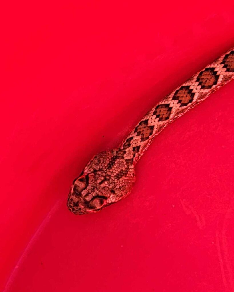 Back in September, homeowners called with a baby rattlesnake on the front patio. They were about to have a birthday party, so it was important to have a safe area before the kids arrived. Maggie went out and retrieved this young Mojave Rattlesnake and got it to a better spot.