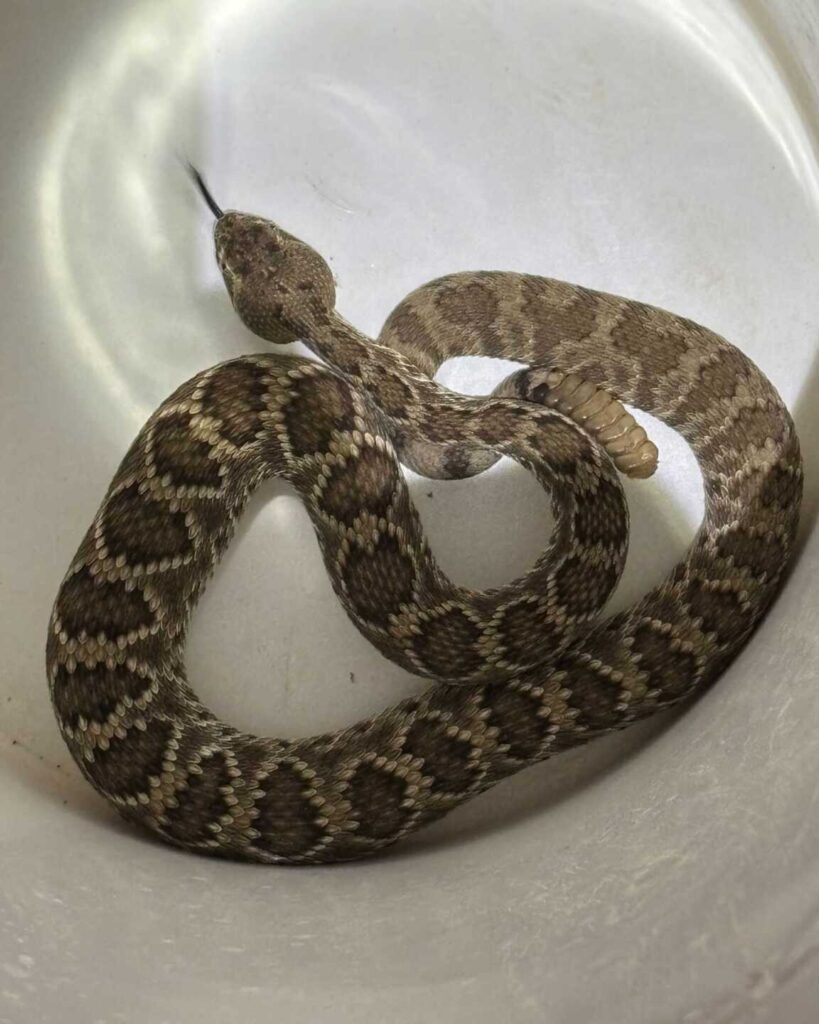 This little Mojave Rattlesnake is the current hide and seek champion. The homeowners thought that it had disappeared, and Jason was starting to think the same after searching every place in the yard that looked like a snake could be hiding there. The snake then decided to help, giving a little rattle from up in a bush! It was then easily captured and relocated to a better spot.