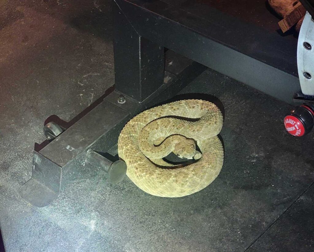 Skipping leg day is allowed for this behemoth of a Western Diamondback Rattlesnake found in a home gym. It didn’t have a membership, though, so Maggie was called to escort it to a rodent hole within its estimated home range.