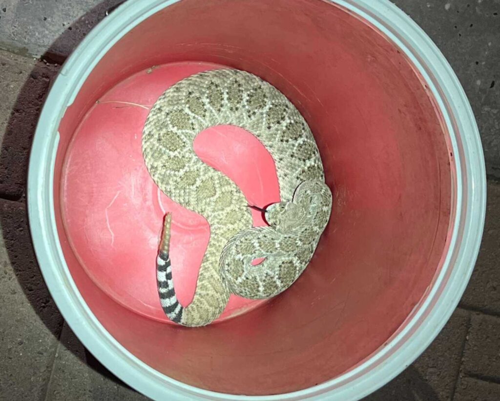 Late-night Western Diamondback Rattlesnake for CJ in north Phoenix. Though there was a sliver of habitat not too far away, the home was certainly not the first place he would have suspected to find one. Desert ironwood trees are my microhabitat of choice, and he found a deep packrat nest under one for a release site.