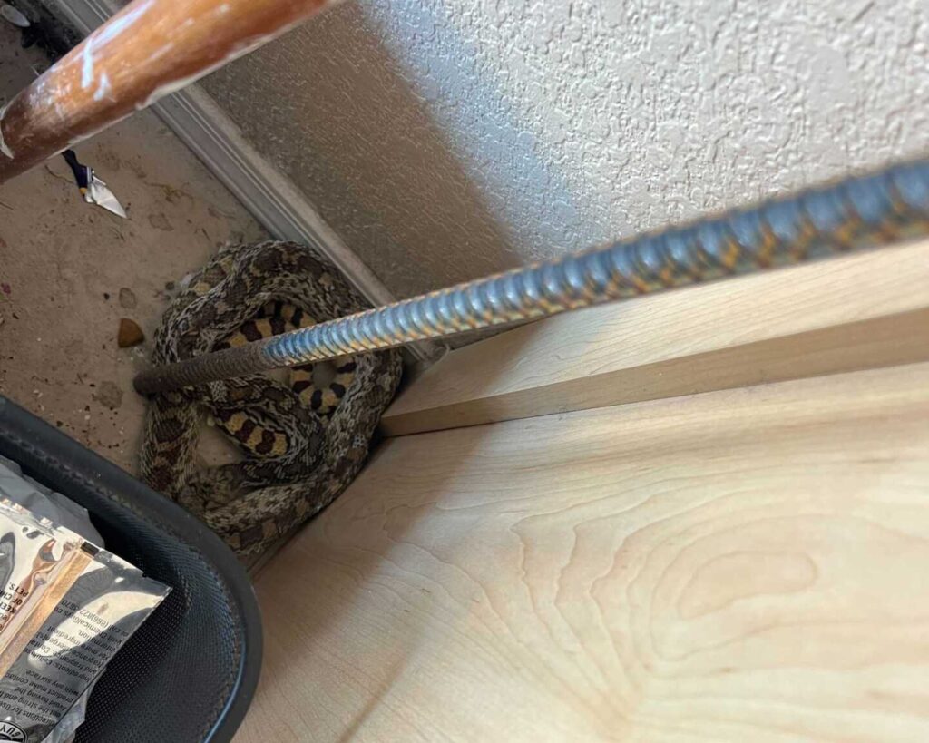 These encounters are largely preventable. In this instance, the snake was there because shelter was provided, along with water and food put out for birds (snake prey). Rattlesnake fencing was also recommended for the future.