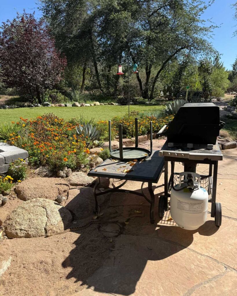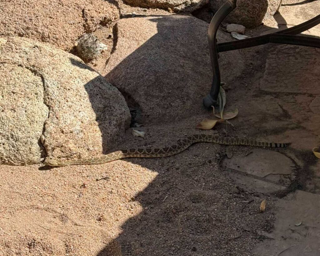 Another Mojave Rattlesnake, this time out in Williamson Valley in an area where most homes are on multiple acres. The snake was found heading under a covered Grill on the back patio. Multiple bird feeders and a large chicken coop were also on the property near the home, which likely contributed to the snake’s presence. Dane helped it get to a better spot for the winter.