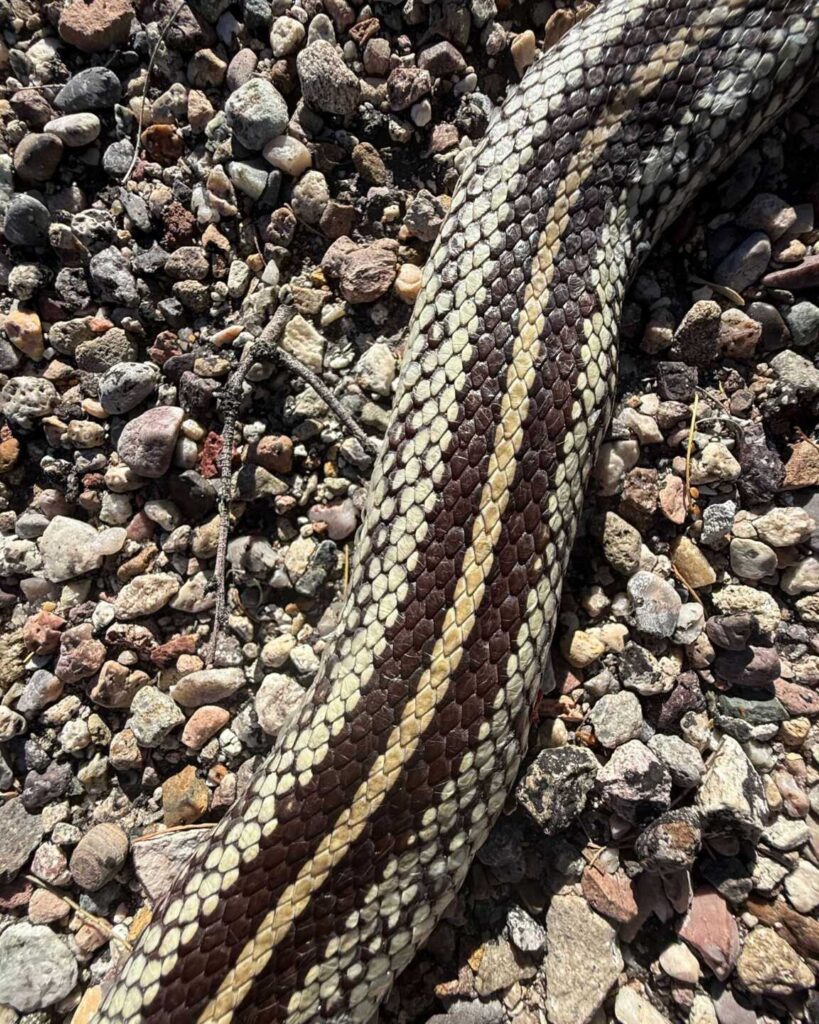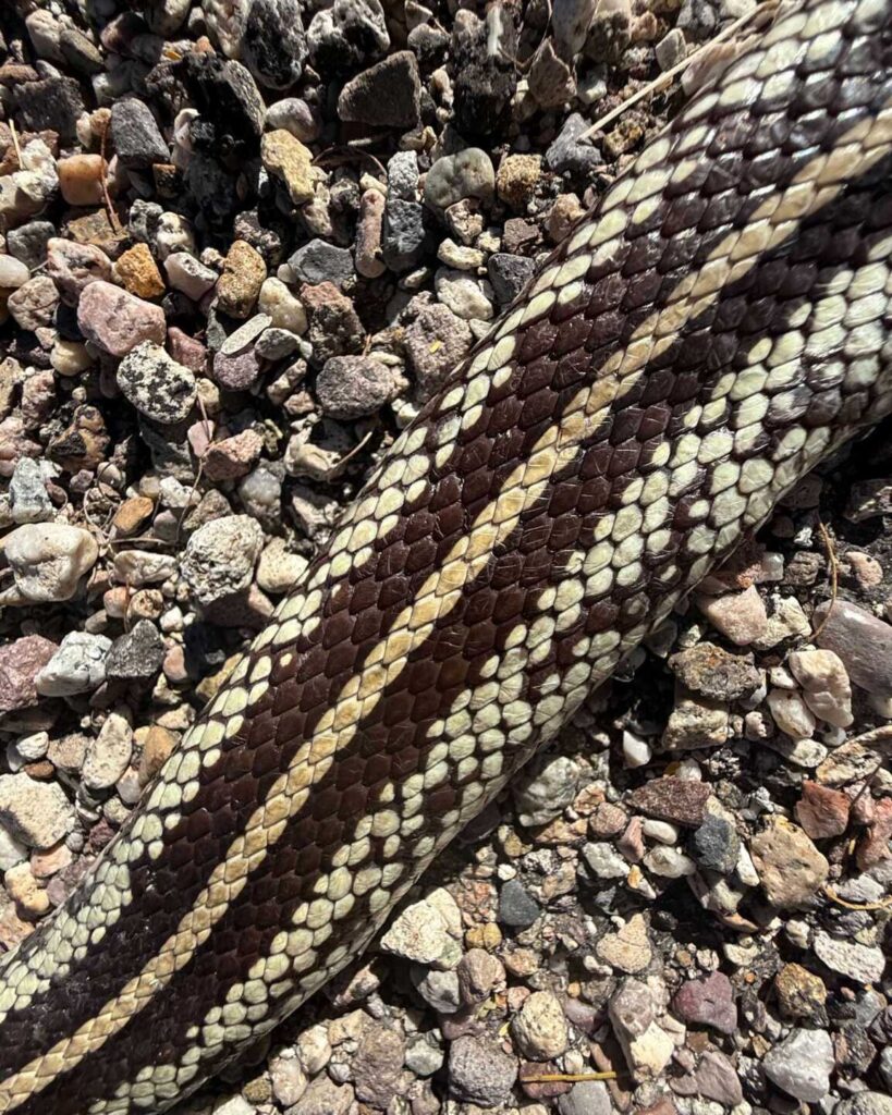 One of the most interesting kingsnakes we’ve ever seen in Arizona! Unfortunately, found dead on a road. If it weren’t for the location (in a place near Tucson in prime habitat), we’d assume this was an escaped pet. Each kingsnake in the area can look entirely different from the next, as the population is a large intergrade zone between California Kingsnakes and Desert Kingsnakes, with a wide range of interesting patterns. This one is a new one for us.