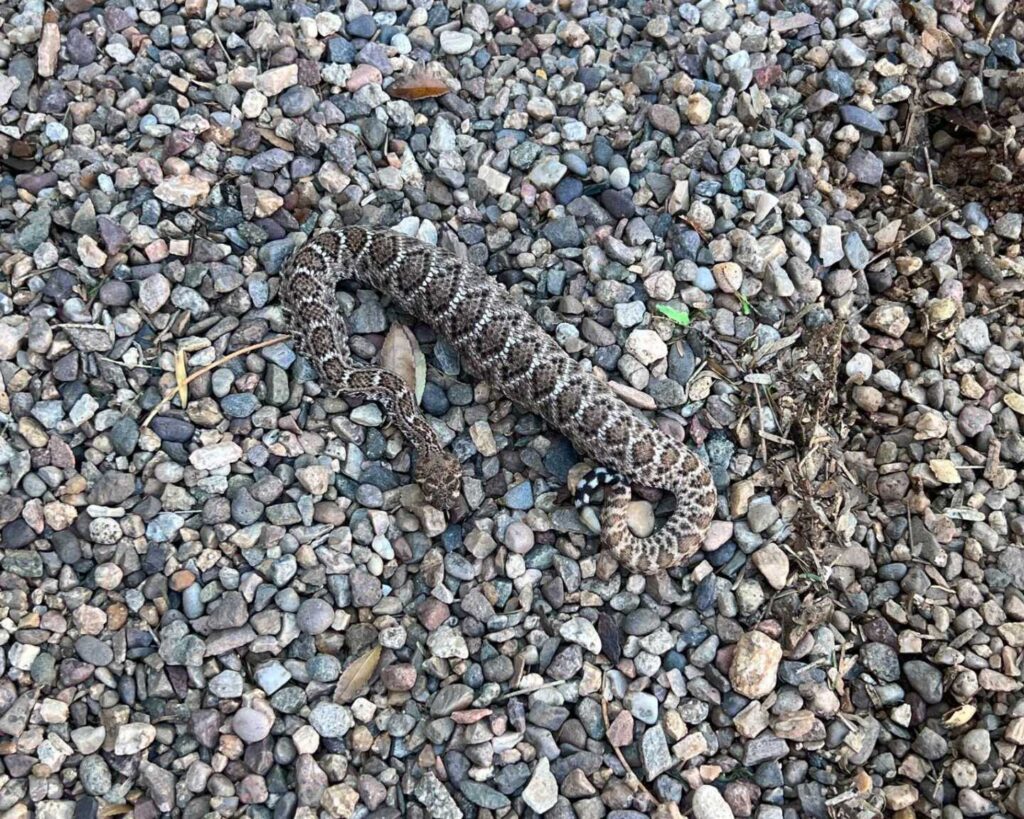 This ambitious little sausage was found on a playground at a school. It had apparently found something big to eat … so big it could barely move to cover from where it was found. Marissa was very careful to move it without causing it to lose its big prize. At this time of the year, such a meal can be the difference between life and death for a snake this size.