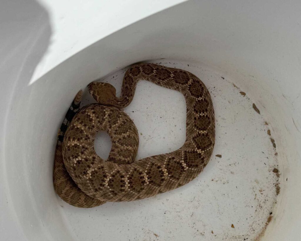 A defensive Western Diamondback Rattlesnake in Scottsdale. This guy didn’t stop rattling from the moment CJ stepped into the backyard until the time he was released.