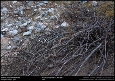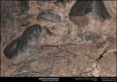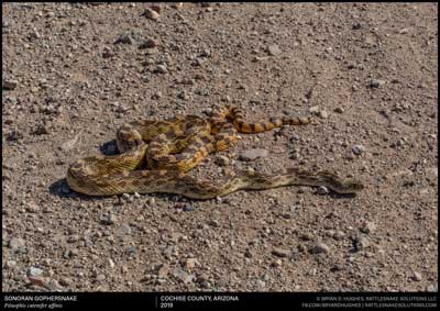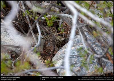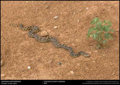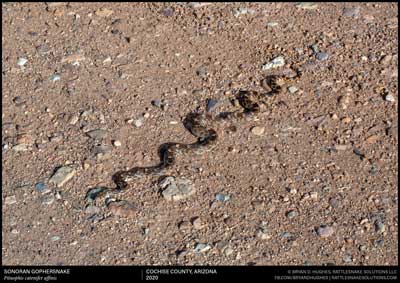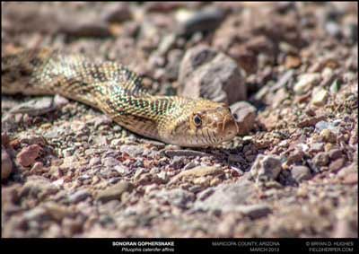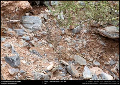 Next to the Western Diamondback, the Gophersnake may be the most commonly snake seen in Arizona. This is not only due to it being incredibly common, but also because it has adapted very well to life in the city. They can be found on golfcourses, parks, alleyways, and back yards throughout the city, even deep into fully urbanized areas.