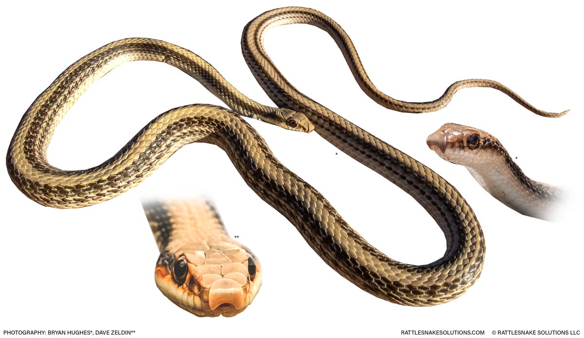 Their color has often been described as "straw", or tan, cream, or a peach tint, with a series of black or brown stripes that run from just behind the eye to the tail. The stripes have a slight saw-tooth look to them, unlike the straight stripes of the Eastern Patch-Nosed Snake. On the end of the nose is an enlarged scale that looks like a small, bent guitar pick, which the snake uses to hunt lizards hiding in shallow sand.